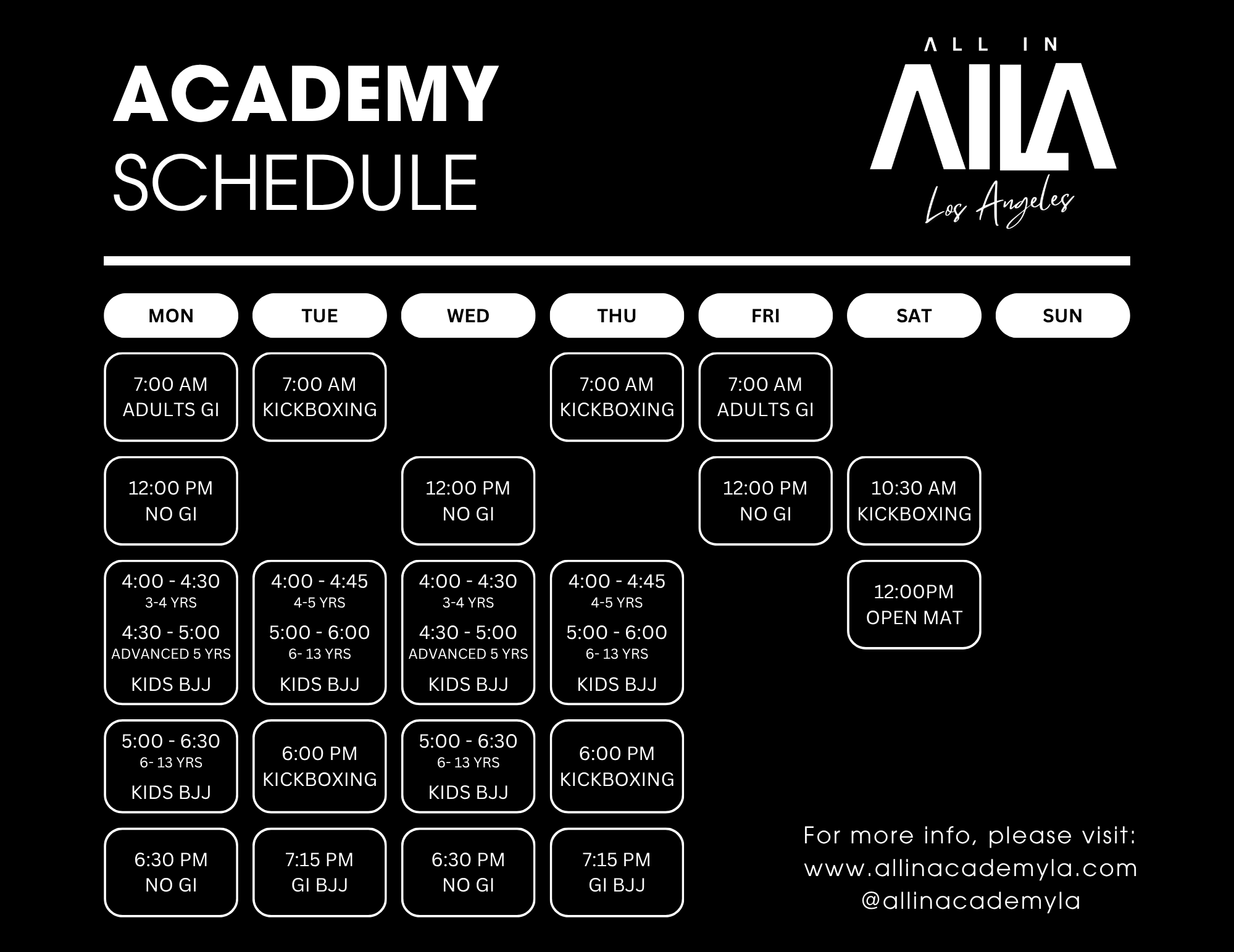 Check out our schedule below and find a class that fits your lifestyle. Whether you're training for competition, fitness, or personal growth, we’ve got a spot for you.